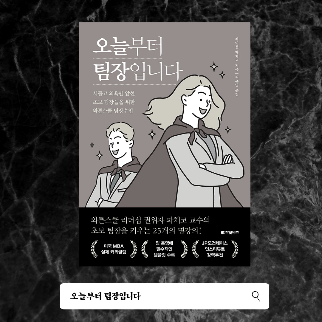 <오늘부터 팀장입니다>는 서툴고 의욕만 앞선 초보 팀장들을 위한 와튼스쿨의 팀장 수업이다. 성과관리, 동기부여, 일의 의미부터 채용 및 해고, 팀 역학, 그리고 자기 경영까지 총 25 강의로 이루어졌을 뿐만 아니라 중간중간 감초 역할을 톡톡히 하는 부록들이 수록되어 있다.