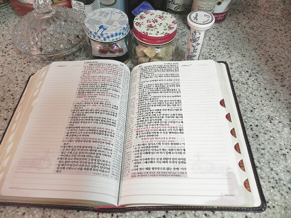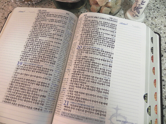 모태신앙으로 태어난 사람으로서 늘 부모님의 기도와 찬송소리를 듣고 자라났고 시댁은 더욱 더 늘 기도하시고 새벽기도에 항상 말씀을 묵상하시는 분들이어서 정말 질릴 정도로 많이 봐 온 풍경입니다. 하지만 그들의 자식들은? 내 남편도 그렇고 나 역시 소위 날라리 신자입니다. 하나님과 예수님을 영접하고 구원을 얻었다고 생각하면서도 노력을 하지 않습니다. 매주 교회에 가서 설교말씀을 듣고 오면 나의 할 일은 다 했다라고 생각하니 날라리 신자 아니고 무엇이겠습니까? 모태신앙으로 입교세례를 받은 사람으로서 더욱 은혜로운 삶을 살아야 할텐데 스스로도 참 안타까운 일입니다. 그래서 나이가 들어갈수록 우리 아이들에게도 무언가 본이 될 수는 없을까 이제는 늘 말씀을 읽는 모습을 보여주고 스스로 묵상하며 인생에 있어서 기쁨이 얼굴에 드러나는 삶을 살아야 겠다고 늘 생각만 하고 있다가 이번에 메모 성경이 나와서 이 성경을 보는 순간, 아 이거다 이 성경이라면 나도 열심히 읽고 묵상할 수 있겠다는 생각이 단번에 들었습니다.