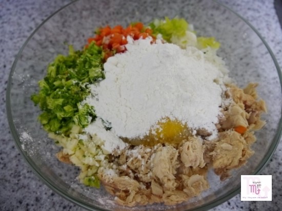 참지로 했을때는 좀 퍽퍽한 느낌이 있었는데 연어로 하니 훨씬 부드럽더라구요~, 근데 통조림이 아닌 연어살로 하면