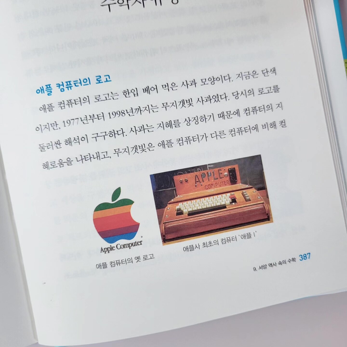 가령 황금비가 숨어 있는 예술작품이라든지, 우리가 잘 아는 애플 로고는 왜 한 입 베어먹은 사과 모양인지* 같은 것들을 책을 읽으면서 쉽고, 재미있게 알 수 있다.