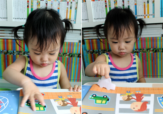 자동차 스티커를 붙이기도 하고, 부릉부릉 자동차를 손으로 이동시키기도 하더라구요.