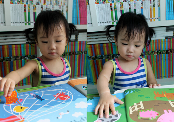 책을 펼쳐보면 창의력 책 답게 다양한 형태의 활동자료들이 등장하는 것을 확인 할 수 있답니다.  스티커 붙이기, 구멍이 송송 뚫린 부분, 들춰보기 등 아이가 호기심을 갖고 살펴볼 수 있도록 다양한 활동자료들이 담겨져 있답니다. 우리 아이는 펜 하나를 들고 스티커를 붙이는 곳에도 쓱쓱 그림을 그리기도 하고, 때로는 스티커들을 겹쳐서 붙여보기도 하고, 마음껏 워크북을 활용했어요. 이제 말을 배우고 있는 단계이기 때문에 책을 읽어주며 따라해보기를 유도해보기도 하였어요. 다양한 활동자료가 있어서 지루해하지 않고 스티커를 붙였다가 연필을 들었다가 책을 넘겼다가 하며 재미있게 활용하더라구요.