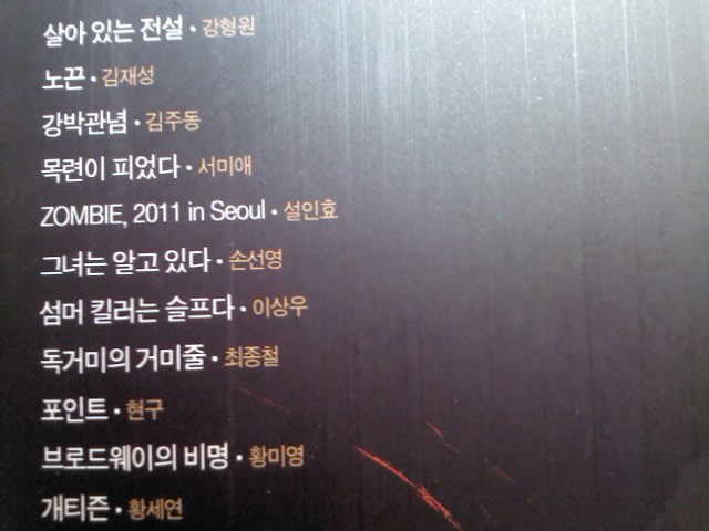 나름 재밌게 읽었습니다. 단편의 한계인지 무릎을 탁! 칠 정도의 대작은 없었으나 수작 몇작품이 눈에 띄네요. 본격 추리 매니아로서 <노끈>과 <포인트>가 특히 좋았습니다. 한국 추리소설 화이팅~ 입니다.