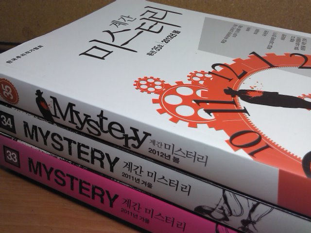 봄과 함께 다가온 [계간 미스터리 2012년 봄호]. 일단 표지가 산뜻하니 이쁘고 좀 더 미스터리 잡지 느낌이 들어 맘에 드네요. 이번 봄호 역시 국내외 단편들을 필두로 대담, 콩트, 에세이, 특별 기고, 재판 참가기. 십자말 풀이 등 다채로운 내용이 수록되어 있습니다.