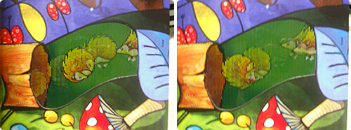 흠, 처음에는 바로 제목을 읽기가 어려웠다. 꼭 우리나라의 “경찰청 쇠창살은~” 하는 것 같아서 재미는 있었다. 게다가 해가 저물고 어두운 밤의 숲속에 관한 이야기라서 더 많은 관심이 갔던 책이다. 우리 공주님은 아직까지도 밤이 되면 여러 가지 핑계(이를 테면 꿀돼지가 숨어있다는 등…)라도 대고 울고 떼를 쓰면서라도 자기를 싫어하는 때가 종종 있어서 그런 아이에게 적절한 잠자리 책으로 사용해봐도 좋지 않을까…? 라는 모종의 기대감도 가지고 있었던 책이기도 했는데… 직접 받아보니 기대 이상이라서 아이와 함께 책을 보는 시간이 즐거워지기까지 했다. 가장 관심이 갔던 것은 이 책이 스캐니메이션북 이라는 사실이었는데, 스캐니메이션북은 책장을 날개짓 하듯이 움직이면 같이 그림도 움직이는 책이다. 내가 보고도 처음엔 어떻게 동작하는 것인지 몰라서 신기했었는데… 우리 공주님도 그 사실이 놀라웠던 듯 싶다. 처음에는 그냥 책인줄로만 알고 보다가 어느 순간 책장을 움직이면 그림이 움직인다는 것을 알고 나서부터 매일 책장을 잡고 신나게 날개짓을 한다. 그렇게 책을 많이 움직이고 잡아당기게 되는 책이라서 그런지 아주 튼튼하게 만든 모양이다. 그렇게나 우리 공주님에게 혹사를 당하는데도 끄떡 없으니 말이다.