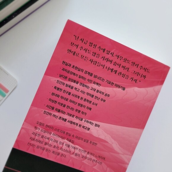 호러, SF, 스릴러, 미스터리, 코미디 등.. 오컬트에서 신화적인 요소까지 다양하다. 특히 여성의 시각으로 전개되는 이야기들이 이 책의 특징이지 않을까 싶다. 판타지함에 녹아있는 너무나 현실적인 이야기들. 현실과 초현실의 경계를 자연스럽게 넘나드는 환상적인 이야기들.