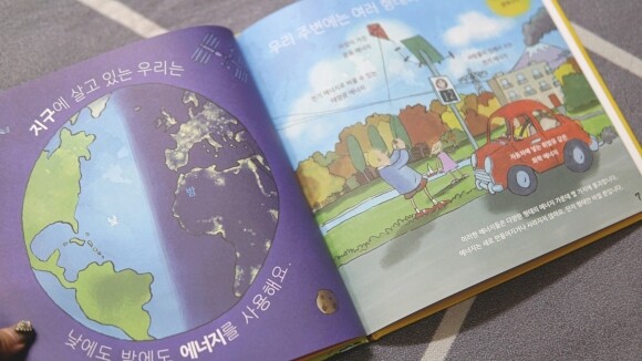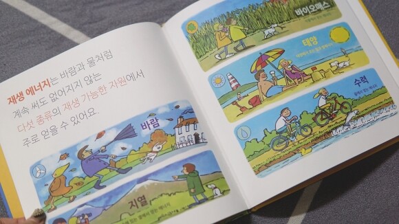 화석 연료를 사용할 때 나오는 이산화 탄소는 지구 환경과 생태계에 어떤 영향을 미치는지, 재생에너지는 어떤 것들이 있는지, 환경 오염과 이상 기후에 병든 지구를 구하기 위해 우리가 할 수 있는 일은 무엇인지 깨닫게 해주는 초등추천도서, 재생 에너지, 지구를 구해요 이었습니다.