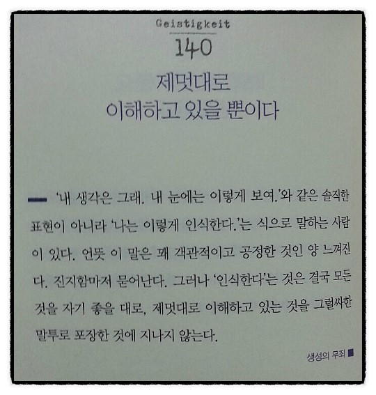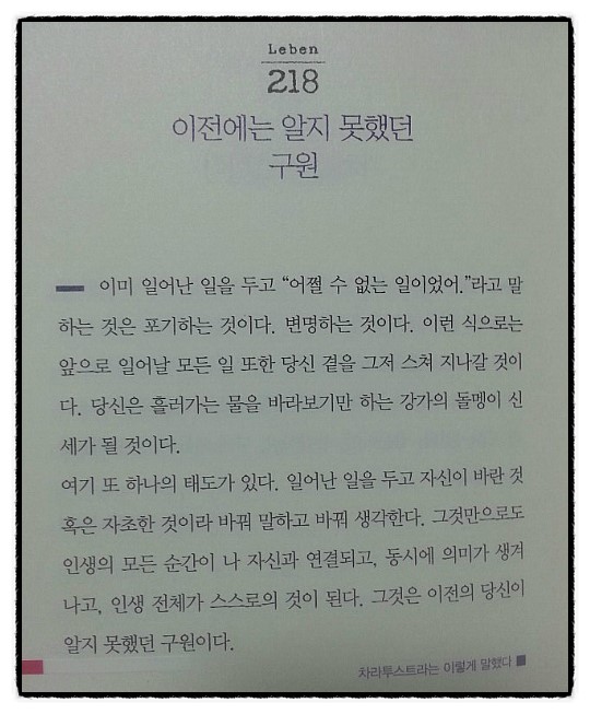 책을 읽으면서 포스트잇을 붙이는 것이 습관이 된 나로서는 이 책에는 포스트잇이 매 페이지마자 붙이다가 나중에는 결국 이 책 자체를 잊어버리지 말아야겠다는 생각에 가까이 두고 읽어야겠다는 생각을 하게 되었다. 단상들이기는 하나 읽어내려갈 수록 그의 이야기들에 절로 고개를 끄덕여 지기도 하고 무언가 가슴을 관통하는 이야기에 절로 숙연해지기도 하는 것이 니체가 이런 사람이었으며 이런 생각을 했었구나, 를 고스란히 인지하게 된다.
