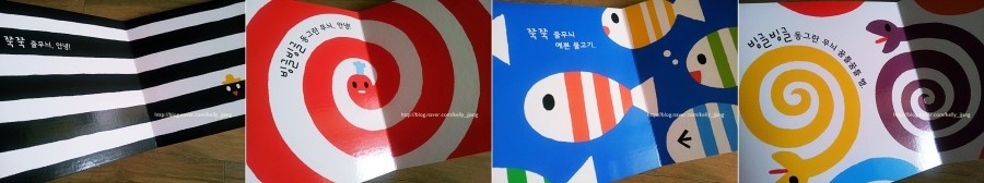 그 다음 장에서는 빙글빙글 동그란 무늬가 인사를 하고,