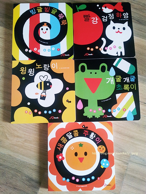 빨간색을 추가하여 강한 색채 대비로 아기의 시선을 집중시킬 수 있는 책입니다^^