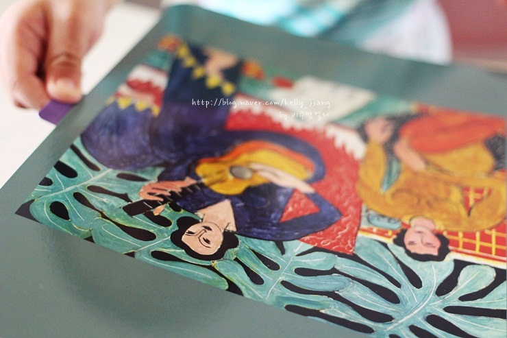 마티스의 음악이라는 작품인데요, 예전에 '피아노를 치면? 딩동 댕동!' 오감명화 그림책에서 보았지요~