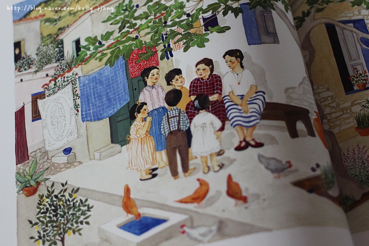 아이가 태어난 이웃집에 찾아가기도 하고 방앗간에 들르기도 하고 재단사가 재킷을 만드는 것도 구경하고, 염소와 당나귀도 보기도 하고.