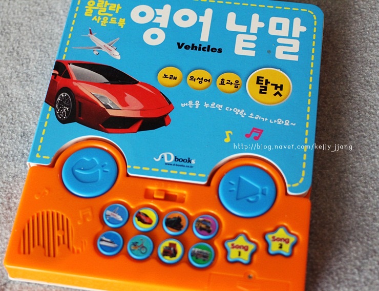 8가지 탈것의 생생한 실물 사진을 보고 버튼을 눌러 소리를 들으면 자연스럽게 탈것을 인지하고 영어와도 친해지도록 도와주는 영어 놀이 사운드북이지요~^^