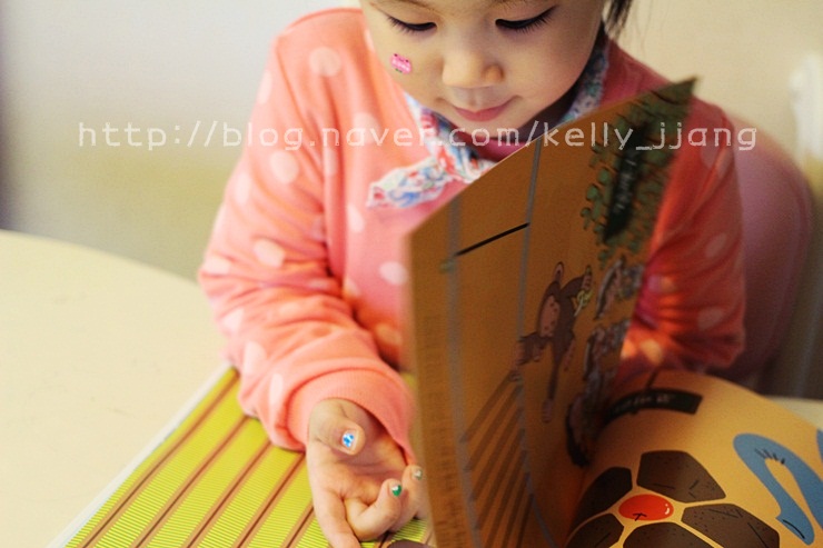 올해 5살이 된 저희 딸, 왠지 좀 어려울 거 같기도 했지만 그림을 보는 것만으로도 흥미로워하는 거 같아요.