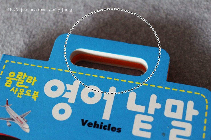 그리고 이렇게 아이의 손에 꼭 맞춘 손잡이형 책으로 들고 다니기에 편하도록 되어 있고요^-^