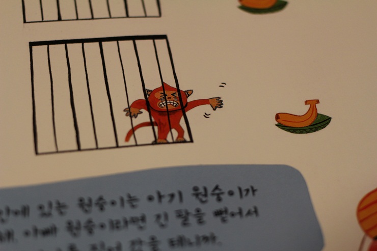 팔이 긴 아빠 원숭이는 먹을 수 있지만 팔이 짧은 아기 원숭이는 먹을 수 없지요.