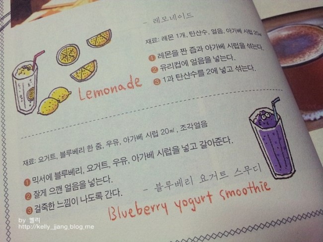 간단한 음료나 커피, 과자 등을 만들어 볼 수 있도록 요런 정보들까지 예쁘게 담아 있었다.