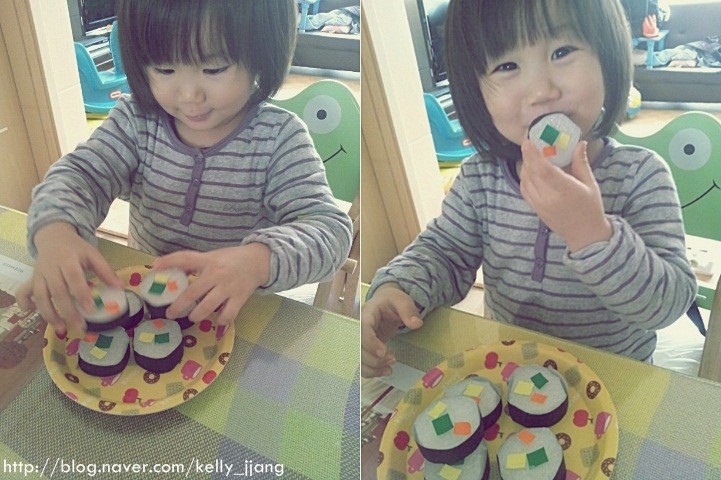 저도 몇 번 꼬마 김밥 만들어 준 적 있어서, 아직 어리긴 해도 김밥이 뭔지는 잘 알고 있답니다^^