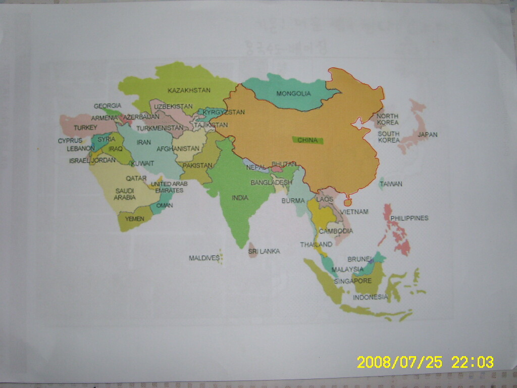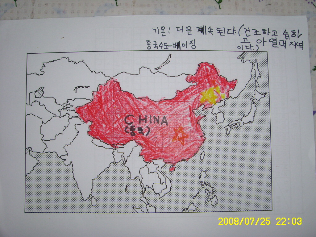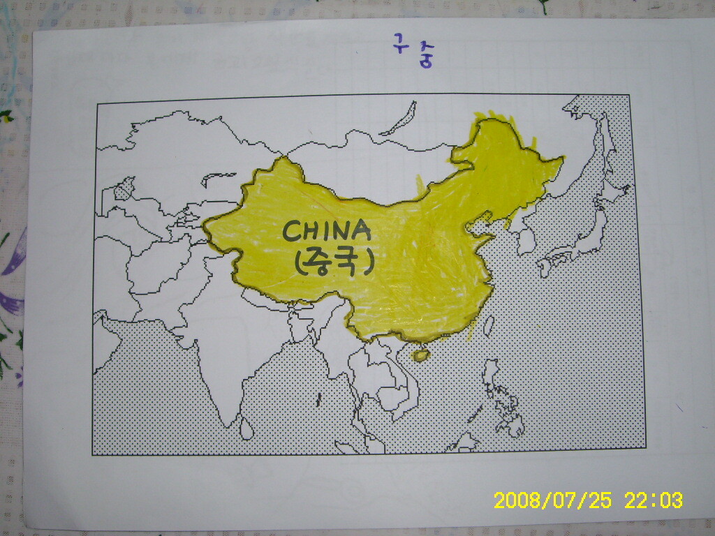 중국이라는 나라의 땅이 얼마나 넓은지 지도에 나타나 있는 지도에 색칠을 하므로 써 느껴보았다.(면적이 한반도의 43배)