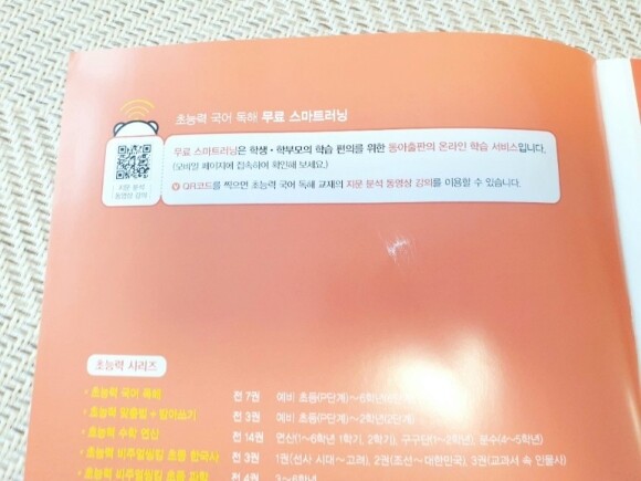 무료 스마트러닝은 동아출판의 온라인 학습 서비스로, QR코드를 찍으면 초능력 국어 독해 교재의 지문 분석 동영상 강의를 이용할 수 있습니다.