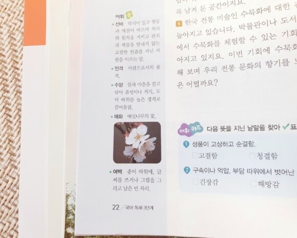 지문 속의 모르는 어휘를 바로 습득할 수 있도록 지문 하단에 어휘뜻을 설명해 놓았어요. 어휘뜻과 함께 실사도 함께 배치해두어 이해를 더욱 돕고 있습니다.