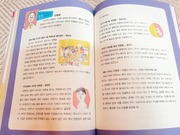 책 속에 담고 있는 내용이 굉장히 광범위하여, 여기에 다 담진 못하지만, 아이들이 이해하기 쉽게 설명하고 있고, 일러스트 또한 아기자기 귀여워서 초등 고학년부터는 재미있게 읽을 수 있는 책입니다. 중학생 딸 뿐만 아니라, 초등 고학년이 되는 둘째와 저까지.... 온 가족이 함께 볼 수 있는 책을 만나 오랫만에 즐거웠어요.