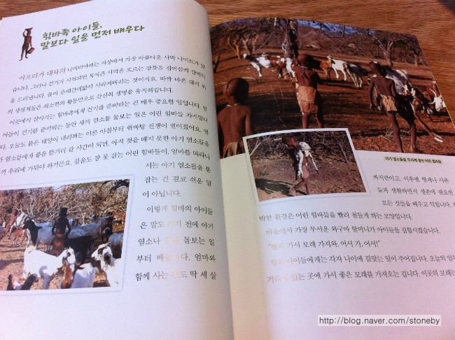 힘바의 아이들은 말도 하기 전에 아기 염소나 양을 돌보는 일부터 배웁니다.