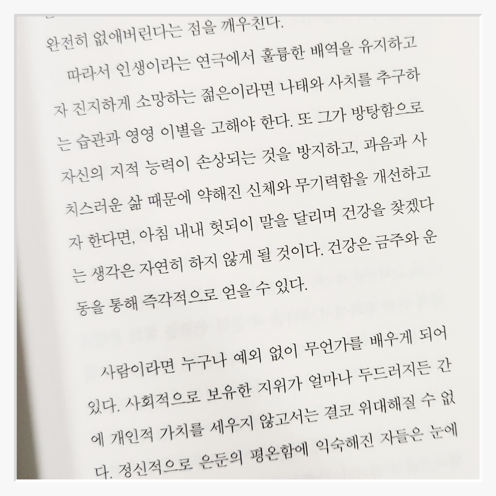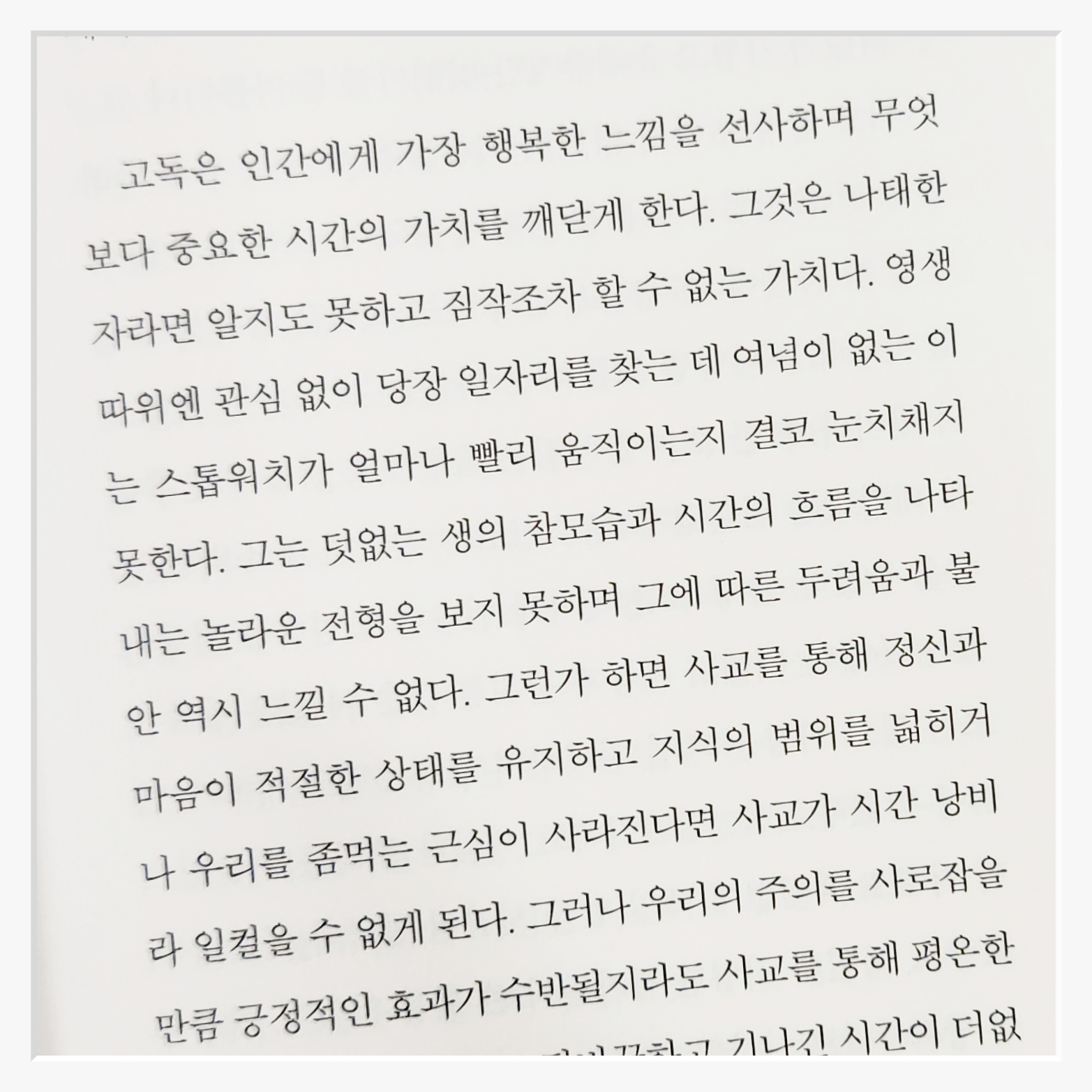 이 책에서 저자는 니체의 철학을 통해 삶의 창조적 측면을 강조하며, 우리가 스스로의 주권을 찾고 살아가야 할 방법을 알려준다. 책을 읽으며 저자가 설명하는 ‘영원회귀’ 개념은 삶의 모든 순간을 소중하게 여길 수밖에 없게 만든다. 지금의 삶이 반복된다면 우리는 그 삶을 긍정적으로 받아들일 수 있을까? 이 질문은 단순한 철학적 물음이 아닌, 우리 일상의 구체적인 실천을 요구한다.