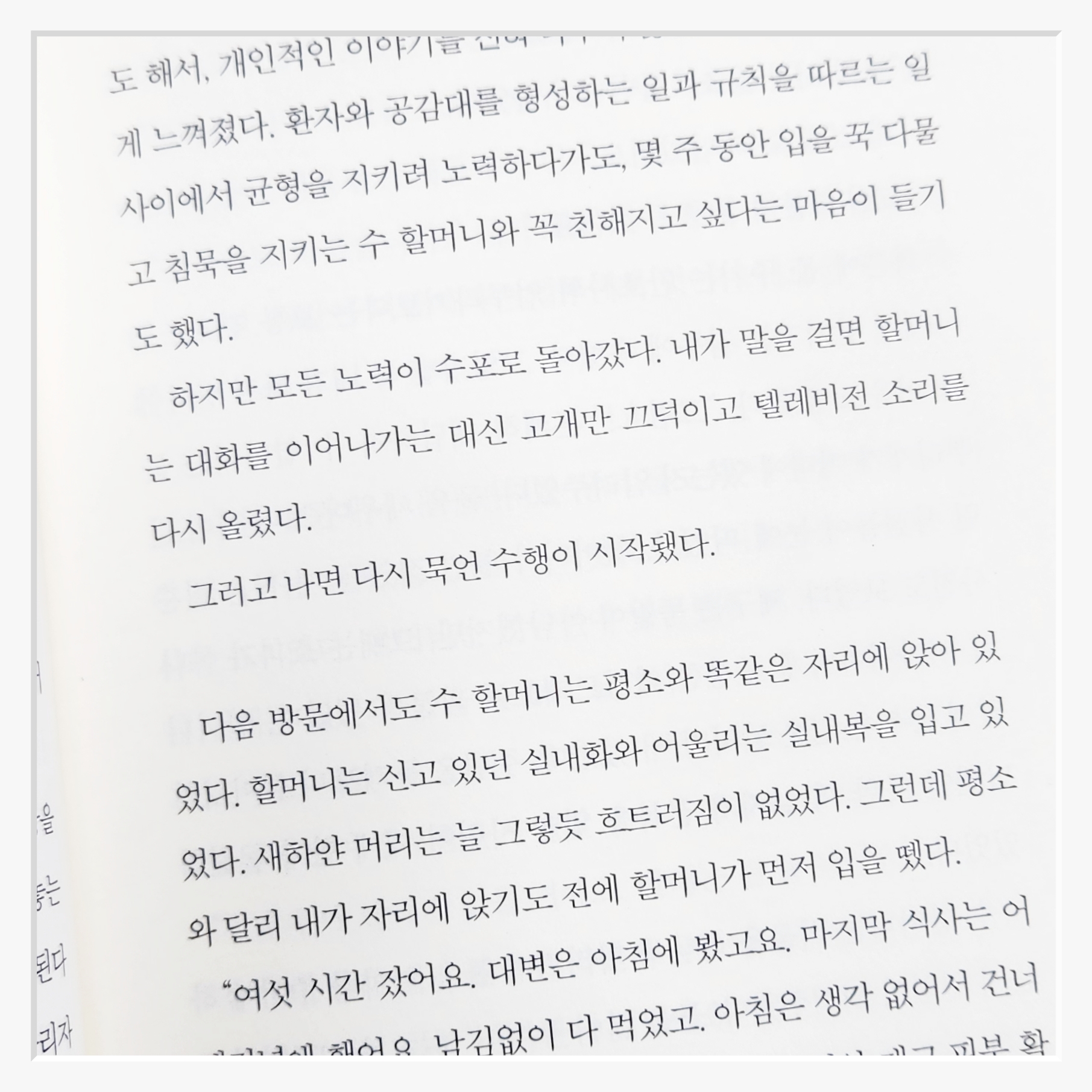 독자들에게 이 책은 단순한 이야기가 아닌, 시간과 삶에 대해 깊이 생각해 볼 기회를 제공해준다. 우리가 살아가는 매일매일이 단순한 숫자가 아닌, 나만의 소중한 시간임을 깨닫게 한다. 지금 이 순간, 당신의 시간은 어떻게 흐르고 있는가? 시간을 살고 있는지, 시간이 나를 살고 있는지 다시 한 번 돌아보자.
