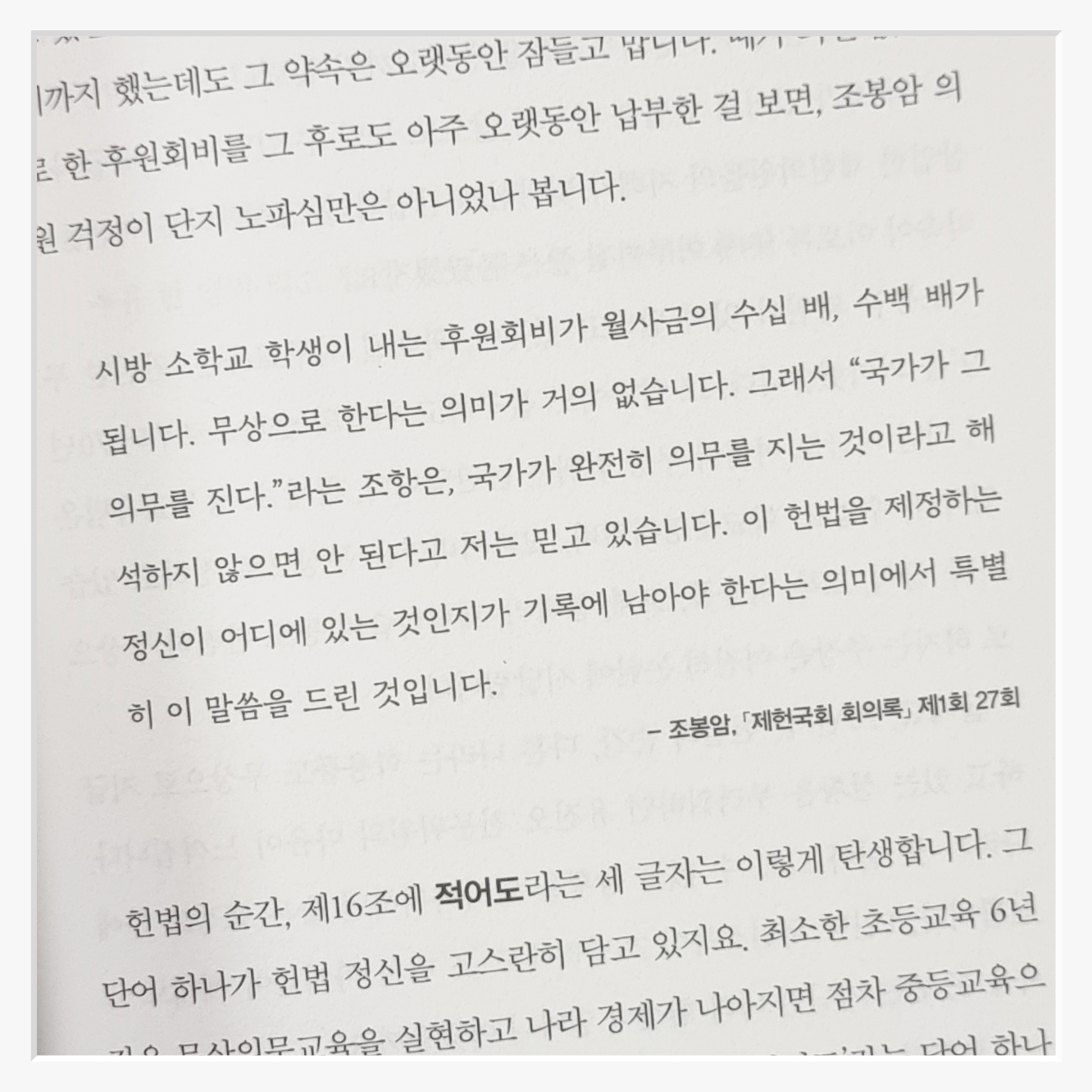 책을 통해 알게 된 것은, 헌법이 단순한 과거의 산물이 아니라, 현재와 미래를 형성하는 중요한 기초라는 점이다. 친일파 청산 문제나 3·1운동의 명칭 문제 등이 단순히 과거의 사건이 아니라, 현재의 사회적 정의와도 깊이 관련되어 있음을 깨달았다. 이는 헌법이 단순한 법률 문서가 아니라, 현재와 미래를 형성하는 중요한 기초임을 강조한다.