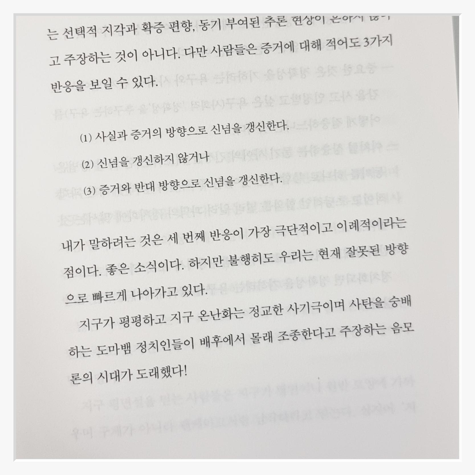 책을 읽으면서 가장 인상 깊었던 점은 우리의 뇌가 얼마나 쉽게 잘못된 정보에 속을 수 있는지에 대한 설명이었다. 인간의 인지 과정과 심리적 메커니즘을 이해함으로써, 우리는 왜 잘못된 정보에 쉽게 영향을 받는지를 알게 되었다. 이는 단순히 지식의 부족 때문이 아니라, 우리의 뇌가 본질적으로 정보를 처리하는 방식에 기인한다는 점이 놀라웠다.