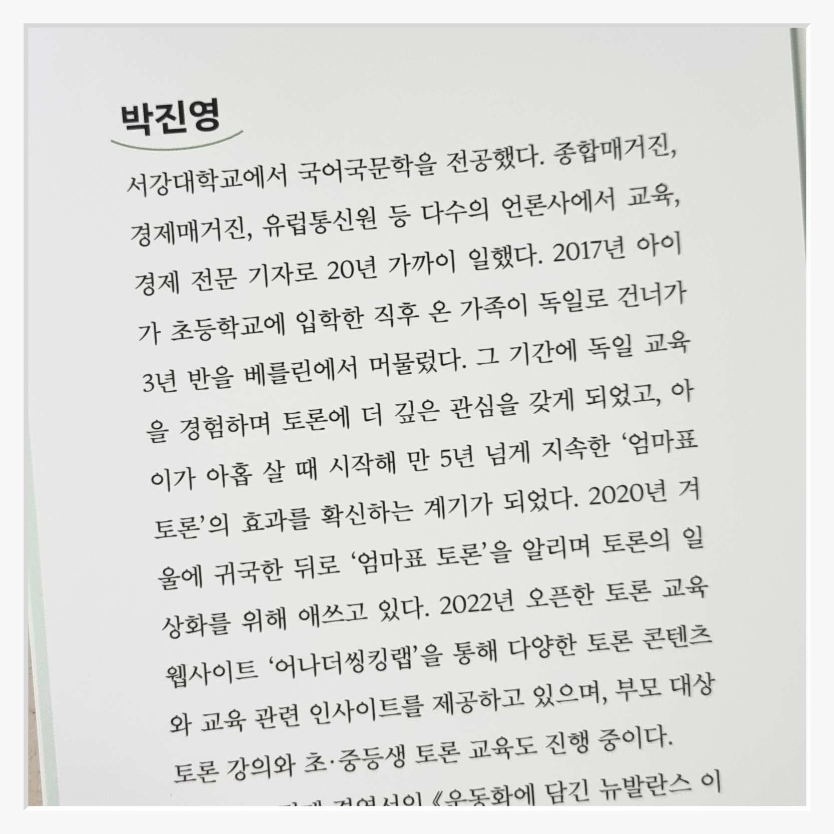아이의 논리적 사고력과 표현력을 키우는 것은 부모로서 중요한 고민이다. 내가 이 고민을 하던 중에 발견한 책이 바로 『한 권으로 끝내는 초등 교과 토론』이다. 이 책은 단순한 토론 책이 아닌, 우리 아이의 전반적인 학습 능력과 사회적 소통 능력을 동시에 향상시킬 수 있는 훌륭한 도구로 느껴졌다.