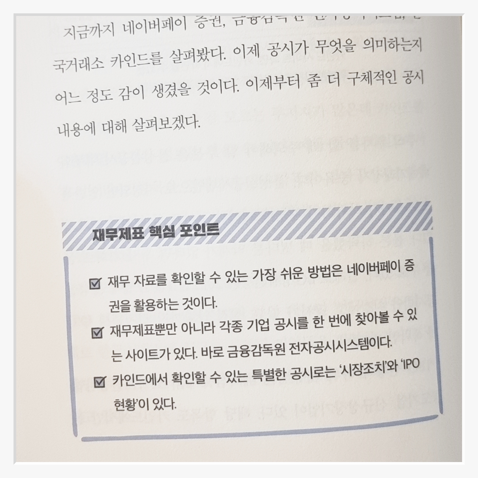 마지막으로, 이 책은 단순히 지식을 전달하는 데 그치지 않는다. 실제로 재무제표를 어디서 찾고, 어떻게 활용할 수 있는지까지 상세히 안내해준다. 네이버페이 증권, 금융감독원 전자공시시스템, 한국거래소의 상장공시시스템 등 다양한 플랫폼을 활용하는 법을 알려주니, 재무제표가 더 이상 어렵게 느껴지지 않았다.