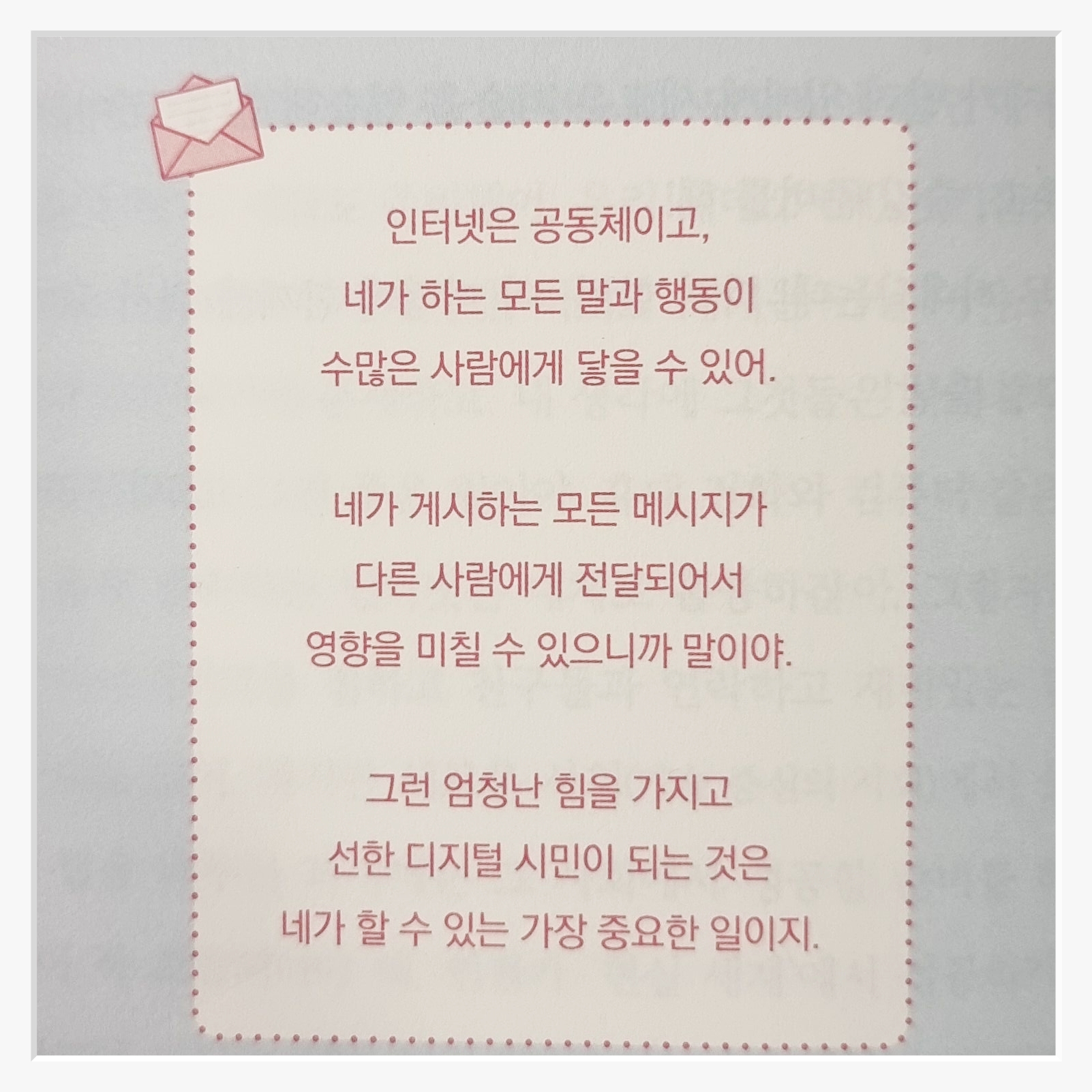 책은 트리샤의 경험과 더불어, 디지털 세상에서 흔히 겪는 다양한 사례들을 바탕으로 어떤 문제들이 발생할 수 있는지 구체적으로 설명해준다. 인터넷에서 누군가를 비난하는 댓글을 남기거나, 허위 정보를 퍼뜨리는 등 무심코 저지를 수 있는 행동들이 실제로 누군가에게 큰 상처를 줄 수 있음을 강조한다.