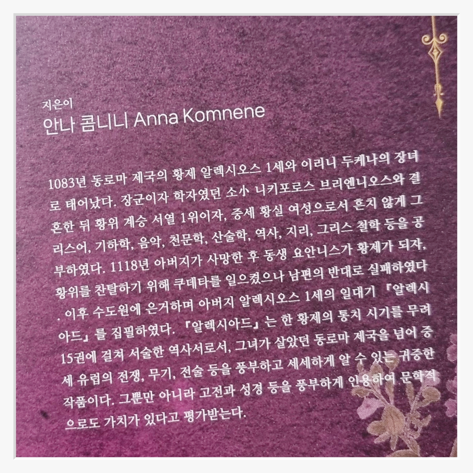 오늘은 조금 특별한 책에 대한 이야기를 나눠보려고 한다. 중세 시대의 역사를 다룬 책들은 흔히 남성의 시각에서 쓰여진 경우가 대부분인데, 이번에 만난 『알렉시아드』는 조금 다르다. 바로 중세 유럽 최초의 여성 역사가인 안나 콤니니가 쓴 작품이기 때문이다. 이 책을 통해 그녀는 동로마 제국의 황제였던 자신의 아버지, 알렉시오스 1세의 일대기를 서술했다. 그러나 단순한 역사 기록을 넘어서, 이 책은 우리에게 무엇을 전하려는 것일까? 그 해답을 찾기 위해, 페이지를 넘기기 시작했다.