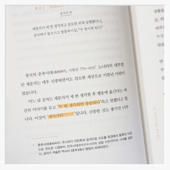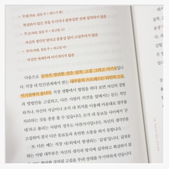 『일 잘하는 사람은 논어에서 배운다』에서 가장 인상 깊었던 부분은, 직장 내에서 발생하는 갈등 상황이나 스트레스를 받을 때 어떻게 대처해야 하는지에 대한 조언이었다. 문제에 직면했을 때 질문을 통해 상황을 명확하게 판단하고, 현명한 결정을 내리는 법을 배울 수 있었다.
