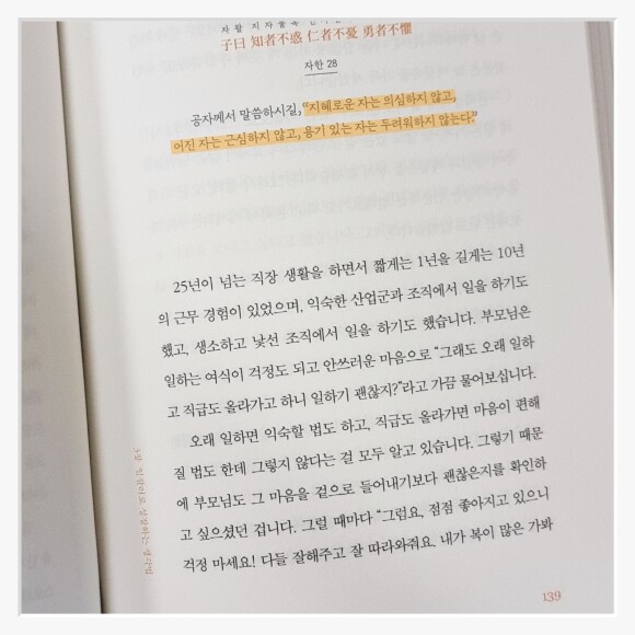특히, 직장 내 리더십과 인간관계에 대한 부분은 마치 내가 겪고 있는 상황을 그대로 옮겨 놓은 듯했다. 리더로서의 자세, 부하 직원과의 소통 방법 등에서 나도 모르게 놓치고 있던 점들을 깨닫게 해준다. 공자의 가르침을 현대 직장 생활에 적용한 저자의 사례들은 이론적이지 않고 실제적이어서 더욱 와닿았다.