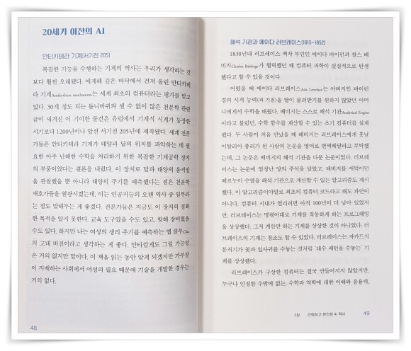 AI와 살아가기 위한 기초 지식AI의 역사적 발전과 여성 개발자들의 역할을 조명하며, 기술 분야에서의 성별 불균형 문제에 대해 고찰한다. 저자는 AI가 인간의 약점과 악습을 답습할 위험성을 경고하며, 다양한 계층의 기술 변화 참여를 주장한다.
