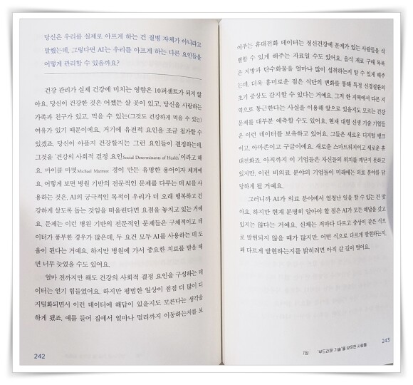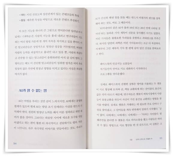 이 책을 통해 놀라운 사실을 깨닫게 된다. AI는 단순한 기계나 알고리즘의 집합이 아니라, 우리의 생각과 가치관을 반영하는 거울과도 같다. AI가 인종차별적 언어를 사용하게 된 테이의 사례에서 볼 수 있듯이 AI는 우리가 무의식적으로 먹여주는 데이터에 따라 선한 것으로도, 악한 것으로도 변할 수 있다. 이는 AI가 단순한 도구를 넘어 우리 삶의 일부가 되었음을 보여주는 사례이다.