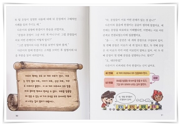 책의 구성도 흥미롭다. 각 장마다 등장하는 미로는 독자에게 적극적인 참여를 요구하며, 이를 통해 문제 해결 능력과 창의적 사고를 자극한다. 이야기의 흐름 속에서 자연스럽게 문해력 개념을 익힐 수 있어 학습의 부담감을 줄여주는 효과도 있다.