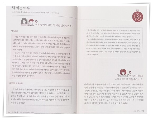 어린 시절의 독서 경험이 얼마나 중요한지 알고 있지만, 아이에게 어떤 책을 추천해야 할지 그리고 그 책을 어떻게 활용해야 할지 항상 고민이었다. 그런 나의 고민을 해결해 줄 책, 《현직 교사가 알려 주는 심리 도서 50》을 마주했다. 아이의 정서 발달과 문해력 향상에 도움이 될 것 같아서 흥미롭게 읽기 시작했다.