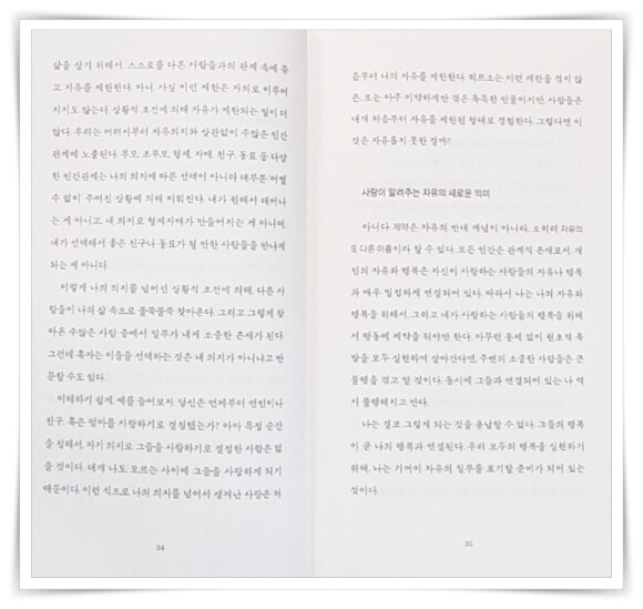 사랑과 관계, 자유에 대한 철학적인 질문을 던지며 독자로 하여금 깊은 사유에 잠기게 한다. 특히, 사랑의 다양한 가능성을 탐구하는 부분은 매우 인상적이다.