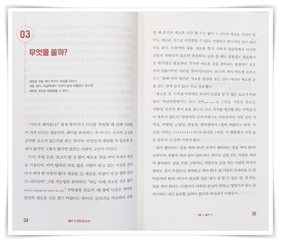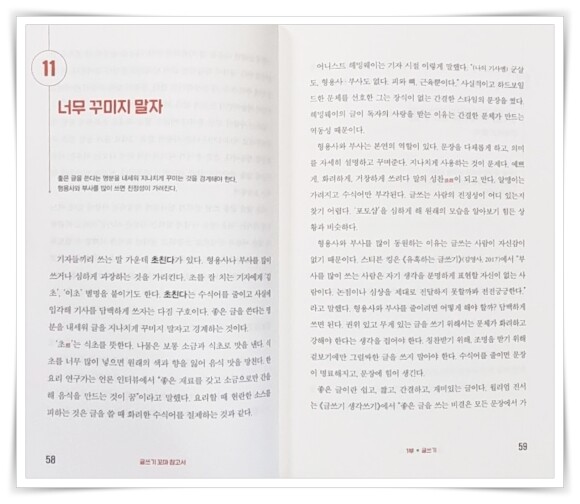 지난 일 년의 시간 동안 책을 읽고 많은 서평을 남겼지만, 글의 수준은 그대로인 것만 같아 고민이었다. 그렇게 글쓰기에 대한 고민이 커져만 가던 차에 글쓰기 꼬마 참고서를 발견했다. 나의 고민을 그대로 담은 듯한 글쓰기 소생술이라는 표지가 내 눈길을 끌었고, 뒤이어 책의 내용이 마음을 사로잡았다.