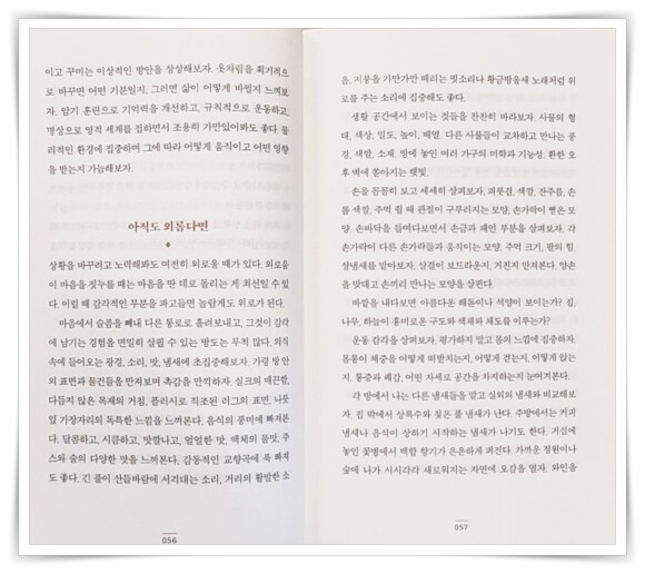 이 책을 통해 나는 내 삶의 어느 지점에 서 있는지, 앞으로 어떻게 나아갈 것인지에 대해 깊이 생각하게 됐다. 모리 교수의 말처럼 나이 듦은 끝이 아니라 새로운 시작이 될 수 있다는 것을 깨달았다.
