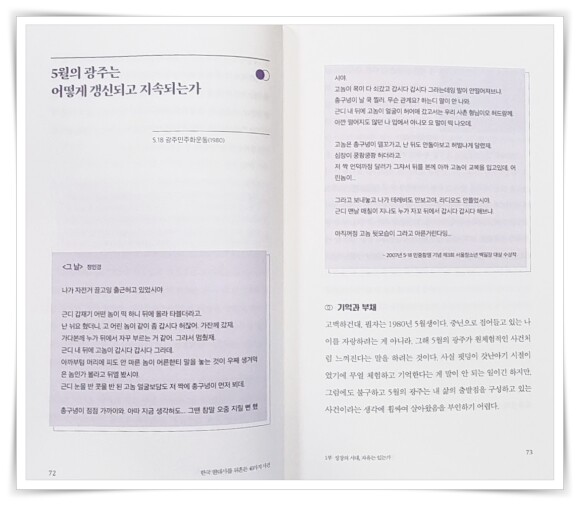 학창 시절 한국사 공부를 하며 숫자와 사건으로만 기억하던 역사가 이 책을 통해 생생한 현장으로 다가왔다. 한국 현대사를 뒤흔든 40가지 사건이라는 제목 아래 우리 사회의 크고 작은 굴곡들이 담겨 있어서 끌렸다.