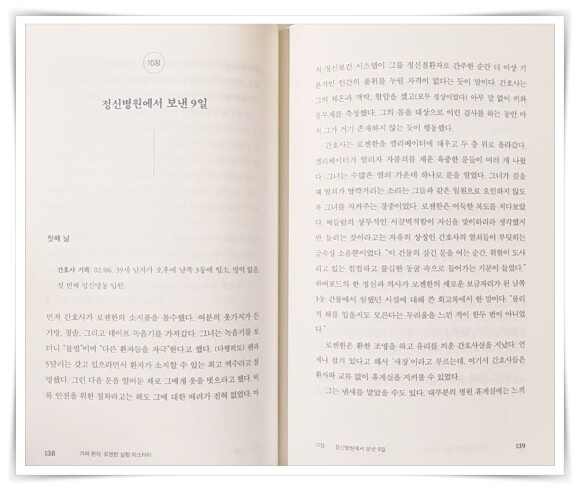 이 책은 로젠한 실험의 역사적 배경과 사회적 영향, 그리고 실험에 참가했던 인물들의 이야기를 꼼꼼하게 살펴본다. 실험에 참여한 가짜 환자들의 경험과 그들의 정체를 밝히는 과정은 마치 추리 소설을 읽는 듯 흥미진진하다.