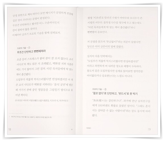 이 책은 특히 직장인들에게 유용하다. 보고서, 이메일, 제안서 등 다양한 업무 문서 작성에 필요한 글쓰기 기술을 알려준다. 그 외에도 블로그 글쓰기, 일상적인 대화에서도 적용할 수 있는 방법을 제시한다.