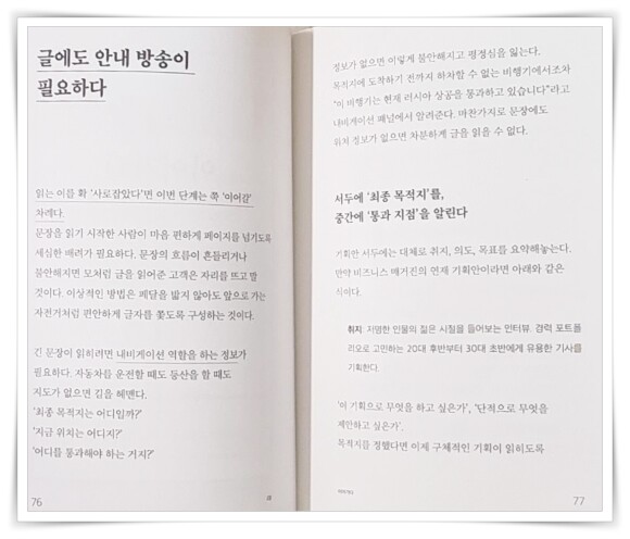 각 단계마다 구체적인 예시가 제시되어 있어 독자들은 어떻게 하면 글로써 타인의 마음을 사로잡고, 관심을 유지하며, 의도한 메시지를 효과적으로 전달할 수 있는지 배울 수 있다.