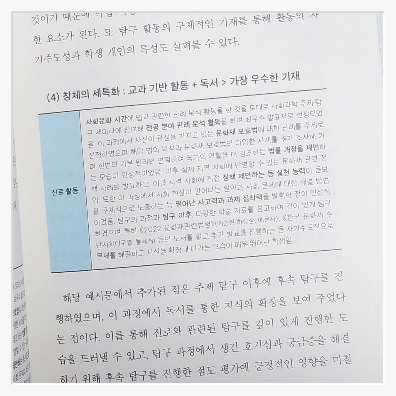 이런 고민 끝에 『합격 생기부 절대 원칙, 탐구력』이란 책을 손에 들었다. 제목부터 직관적이다. 역시나 내 고민과 정확히 맞아떨어지는 책이었다.