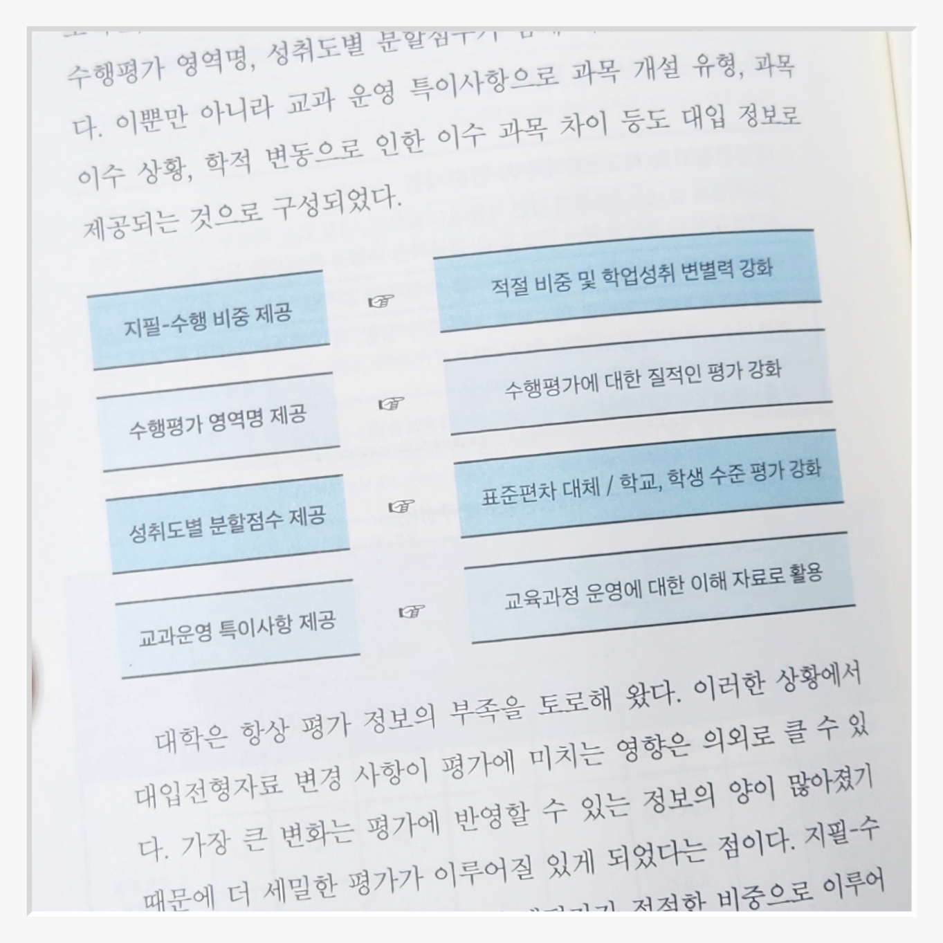 무엇보다 이 책의 신뢰감을 높여주는 건 저자의 배경이다. 실제로 학교 현장에서 생기부를 직접 작성했던 선생님들과, 입학사정관으로서 학생을 뽑던 전문가들이 함께 썼다고 하니, 그들의 조언이 얼마나 실질적이고 정확하겠는가. 읽으면서 끄덕끄덕 공감하게 되었다.